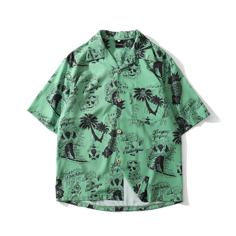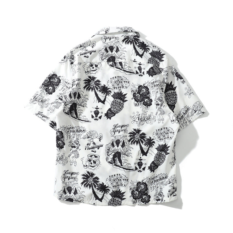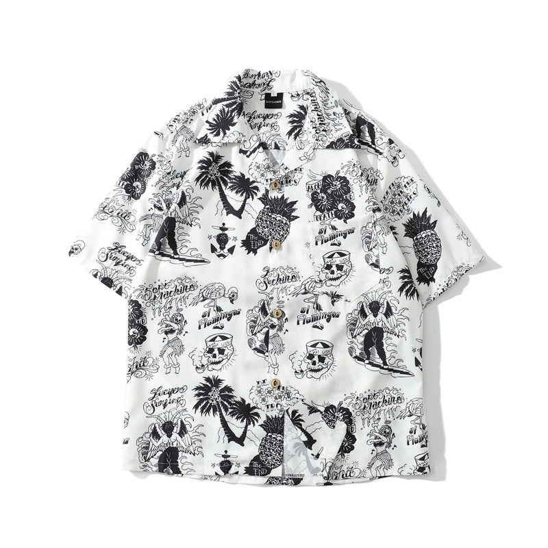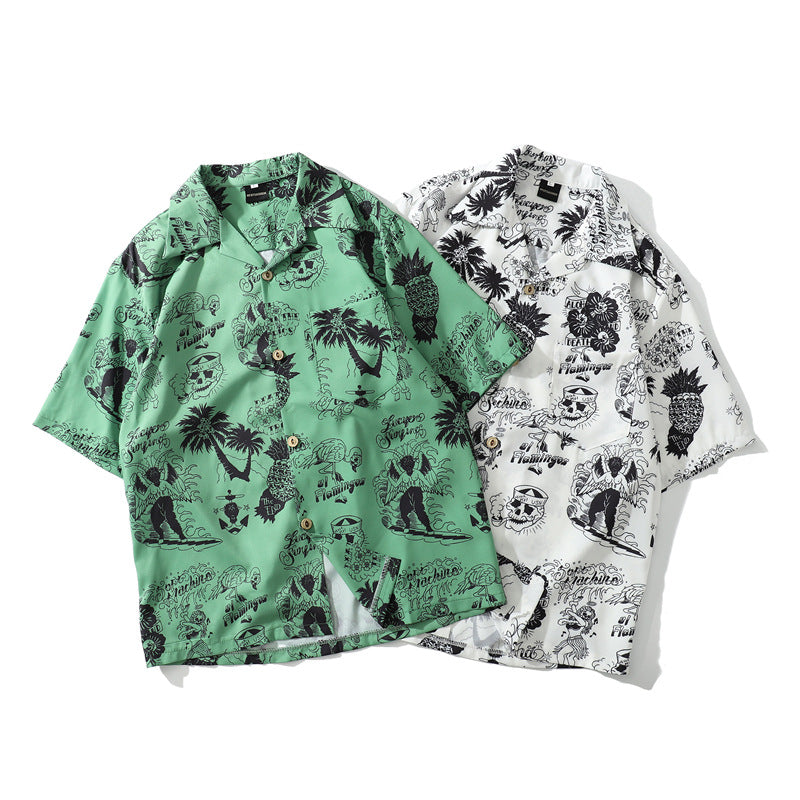 Korean American Cartoon Print Shirt Hip-hop Vintage Port Style Harajuku Loose Hawaiian Jacket Men